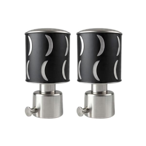 Designer Curtain Rod End Cap | Decorative Finial | Premium Stainless Steel & Matte Black Finish | Heavy Duty Rod Fitting [ pack of 2 ]